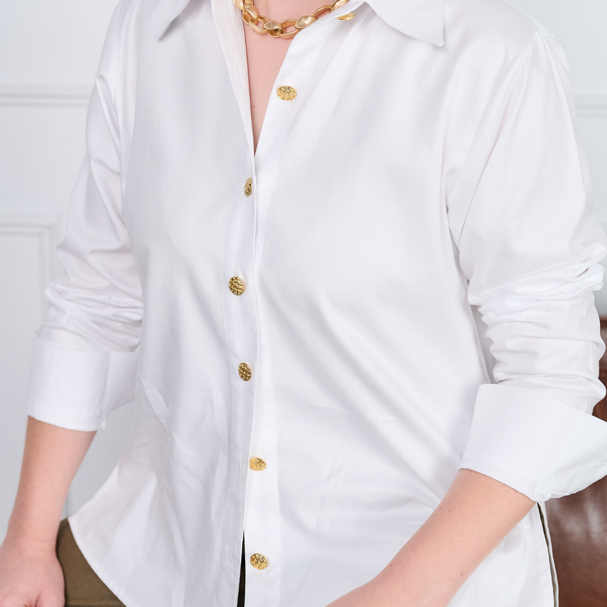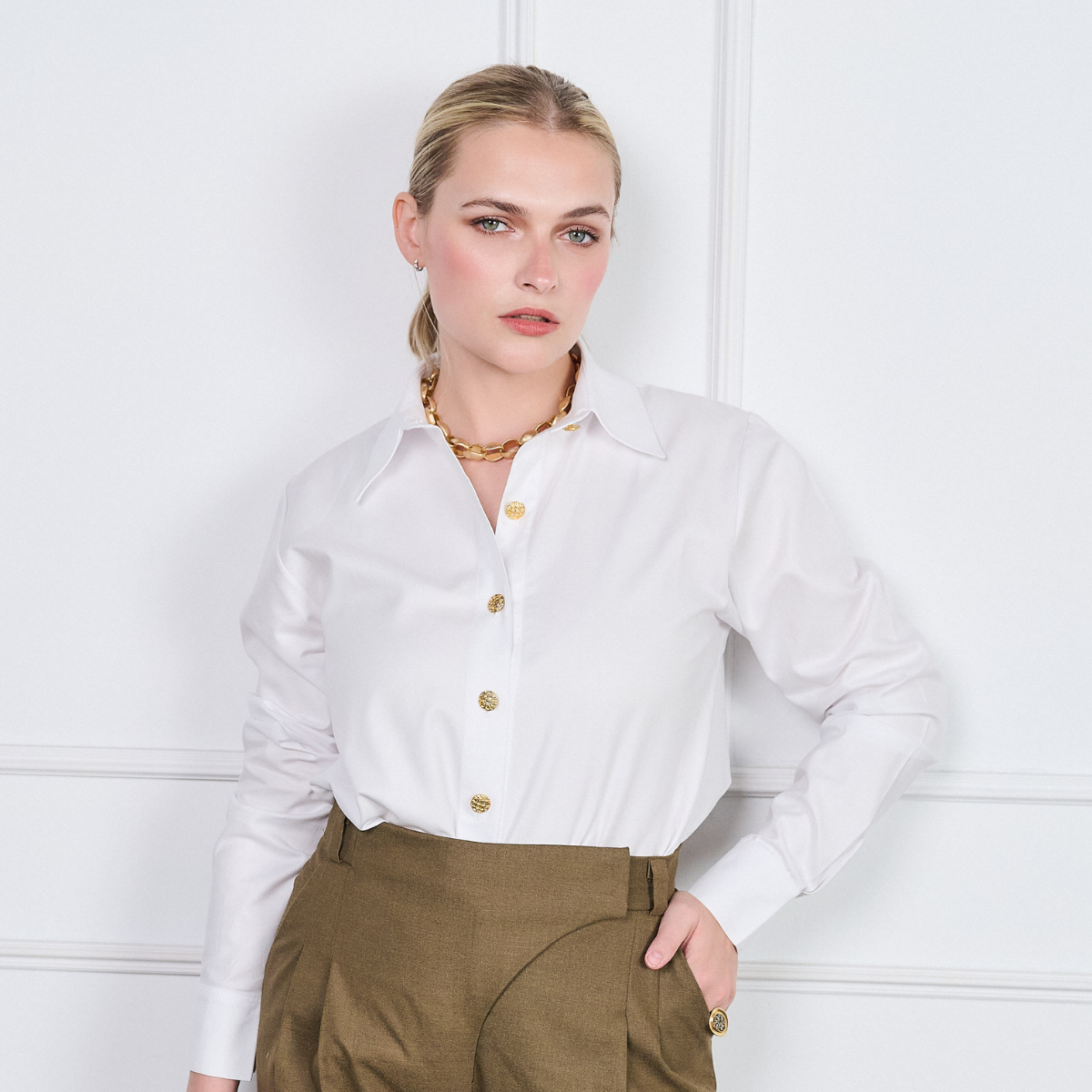 Camisa de algodón de 100%, con corte recto y botones de metal